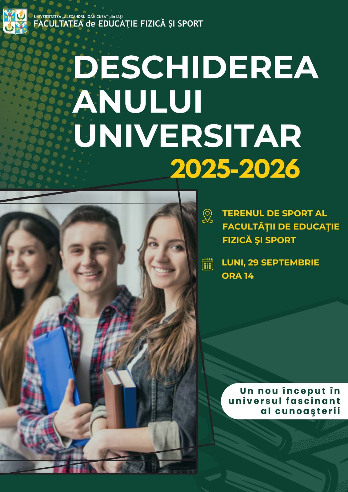 CONCURS pentru ocuparea postului de conferenţiar universitar, poziţia 19 Admin Sport2022-02-01T17:19:50+03:00 Articole asemanatoare Deschiderea Anului Universitar Gallery Deschiderea Anului Universitar Anunț privind selecția de cadre didactice asociate din afara Universității „Alexandru Ioan Cuza” din Iași, pentru anul universitar 2025-2026 Gallery Anunț privind selecția de cadre didactice asociate din afara Universității „Alexandru Ioan Cuza” din Iași, pentru anul universitar 2025-2026 Admitere Studii de Licență – sesiunea Septembrie 2025 Gallery Admitere Studii de Licență – sesiunea Septembrie 2025 Admitere Septembrie 2025 Gallery Admitere Septembrie 2025 Anunț privind selecția de cadre didactice asociate, pentru anul universitar 2025-2026 Gallery Anunț privind selecția de cadre didactice asociate, pentru anul universitar 2025-2026